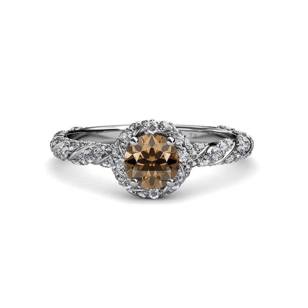 1 2/5 ctw Round Smoky Quartz and Diamond Womens Halo Engagement Ring Platinum More Details ...