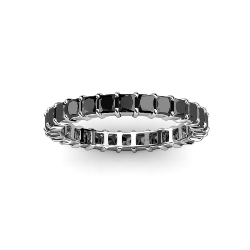 Sophisticated and mordenistic, this Black Diamond eternity band will give you an updated look with a classic design.This illuminating band features a perfect line of sparkling princess-cut Black Diamond in durable prong settings. This Princess Prong Set Eternity band is going to be her jewel of delight. *As per ring size the stone and carat total weight changes.