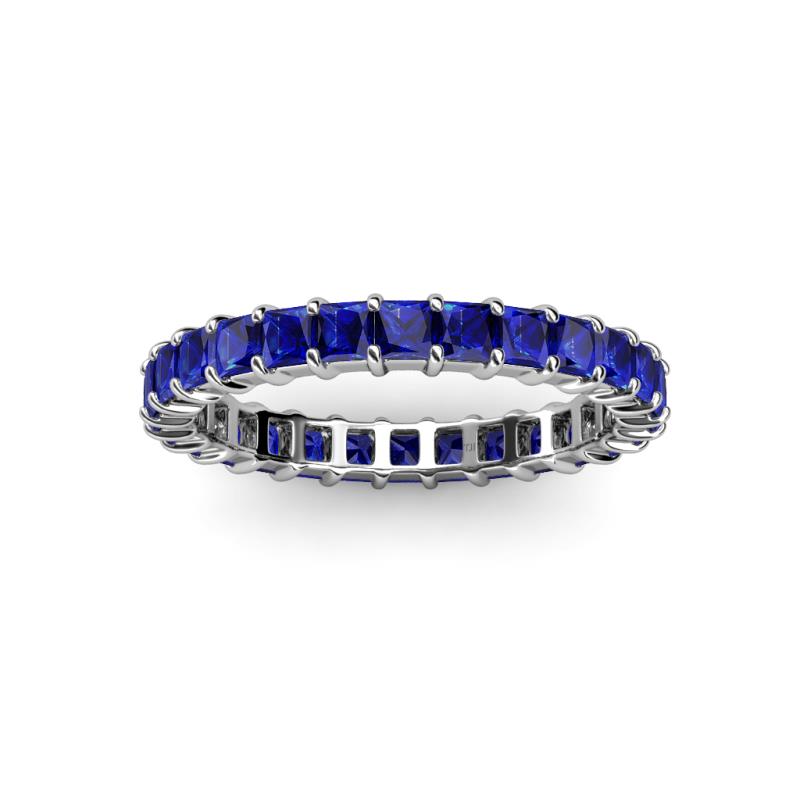 Sophisticated and mordenistic, this Blue Sapphire eternity band will give you an updated look with a classic design.This illuminating band features a perfect line of sparkling princess-cut Blue Sapphire in durable prong settings. This Princess Prong Set Eternity band is going to be her jewel of delight. *As per ring size the stone and carat total weight changes.