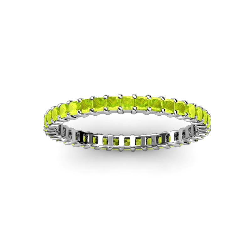 Sophisticated and mordenistic, this Peridot eternity band will give you an updated look with a classic design.This illuminating band features a perfect line of sparkling princess-cut Peridot in durable prong settings. This Princess Prong Set Eternity band is going to be her jewel of delight. *As per ring size the stone and carat total weight changes.