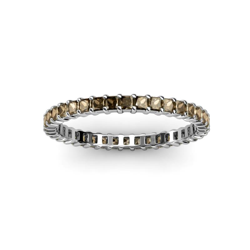 Sophisticated and mordenistic, this Smoky Quartz eternity band will give you an updated look with a classic design.This illuminating band features a perfect line of sparkling princess-cut Smoky Quartz in durable prong settings. This Princess Prong Set Eternity band is going to be her jewel of delight. *As per ring size the stone and carat total weight changes.
