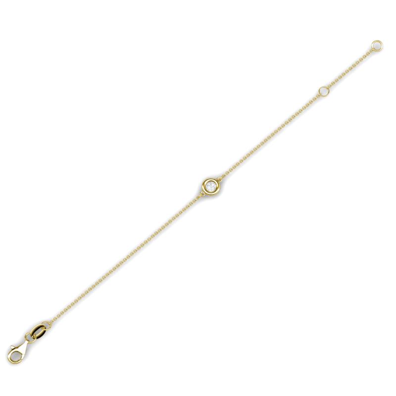 Round White Sapphire 0.11 ct Solitaire Station Minimalist Bracelet 14K Yellow Gold More Details ...