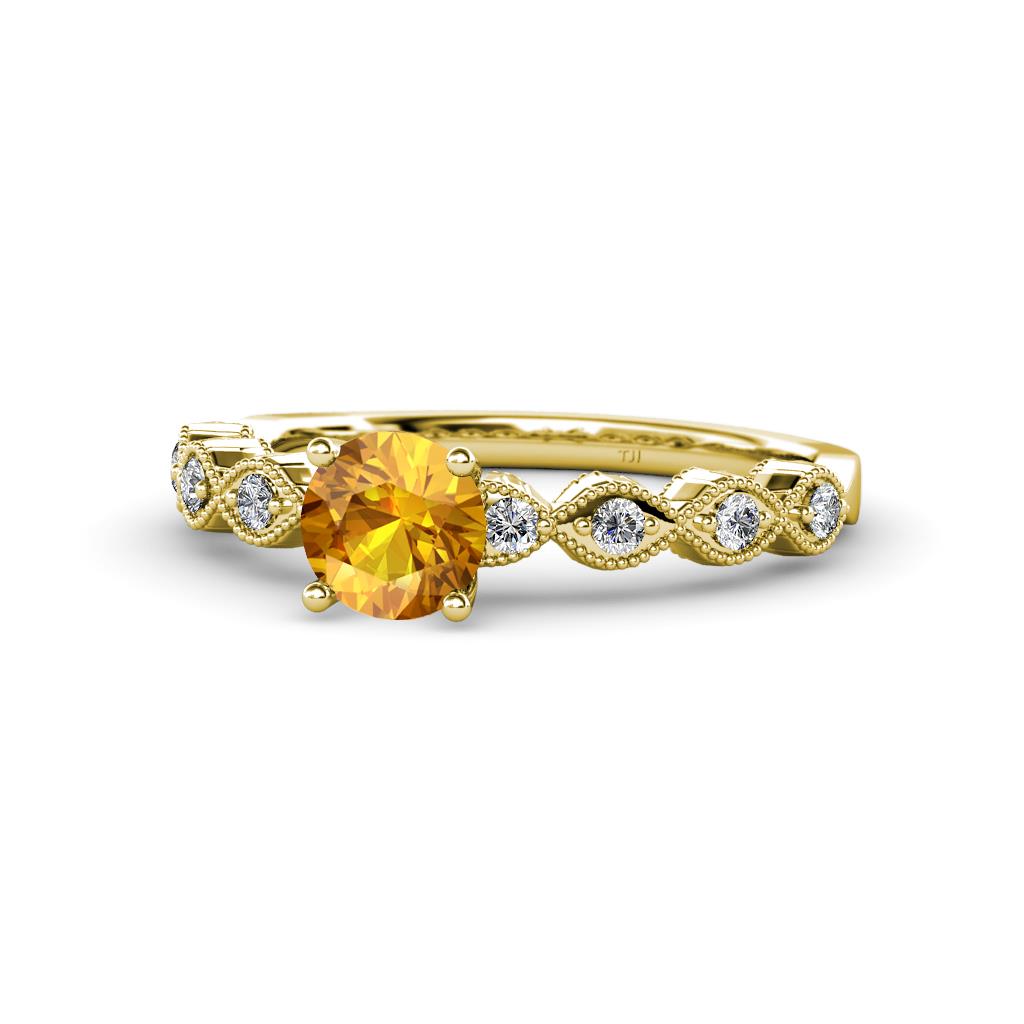 Citrine and Diamond Twisted Womens Engagement Ring with Milgrain Work 0.95 ctw 14K Yellow Gold More Details ...