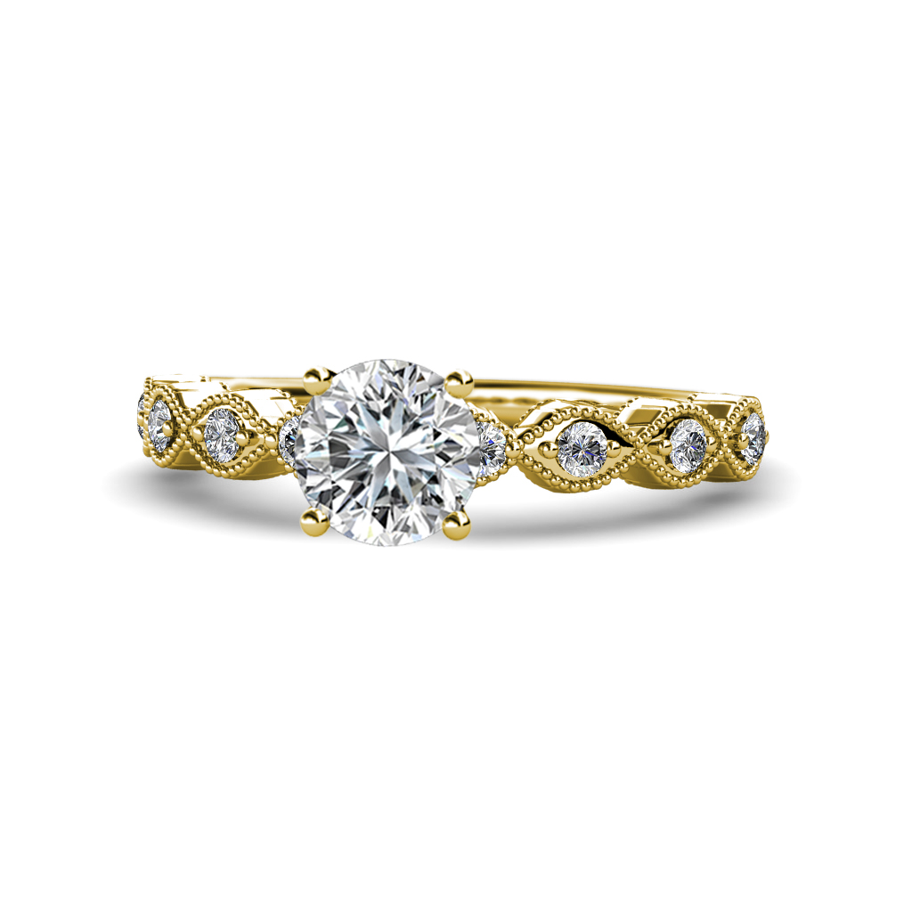 Diamond Four Prong Semi Mount Twisted Engagement Ring (VS2-SI1, F-G) with Milgrain Work in 18K Yellow Gold. More Details ...