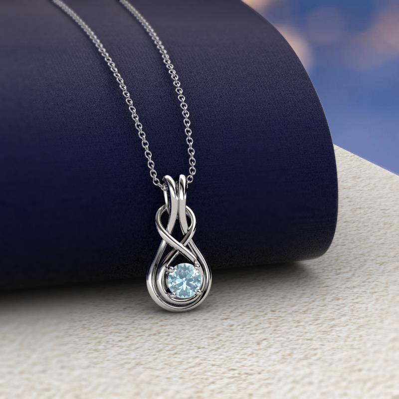 Round Aquamarine 0.08 ct Womens Solitaire Infinity Love Knot Pendant Necklace 18K White Gold.Included 16 Inches 18K White Gold Chain More Details ...