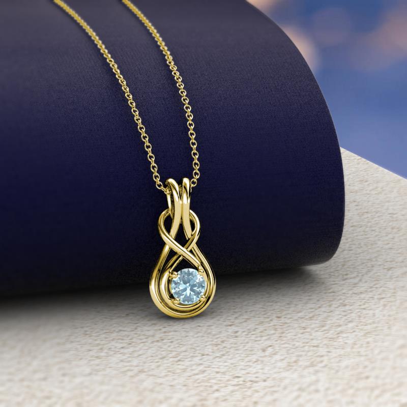 Round Aquamarine 0.08 ct Womens Solitaire Infinity Love Knot Pendant Necklace 10K Yellow Gold.Included 16 Inches 10K Yellow Gold Chain More Details ...