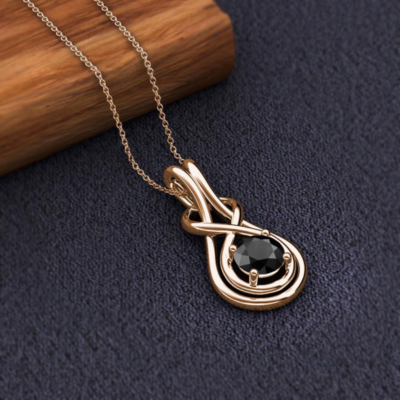 This striking pendant stands true to its name Amanda - Loved by everyone. It signify eternal love with a Black Diamond nestled in the gorgeous fusion of infinity and love knot.