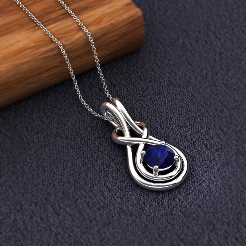 This striking pendant stands true to its name Amanda - Loved by everyone. It signify eternal love with a Blue Sapphire nestled in the gorgeous fusion of infinity and love knot.