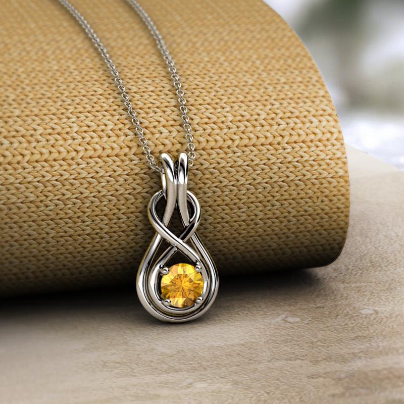 Round Citrine 1/5 ct Womens Solitaire Infinity Love Knot Pendant Necklace 18K White Gold.Included 16 Inches 18K White Gold Chain More Details ...