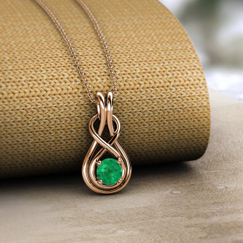 Round Emerald 1/5 ct Womens Solitaire Infinity Love Knot Pendant Necklace 18K Rose Gold.Included 16 Inches 18K Rose Gold Chain More Details ...