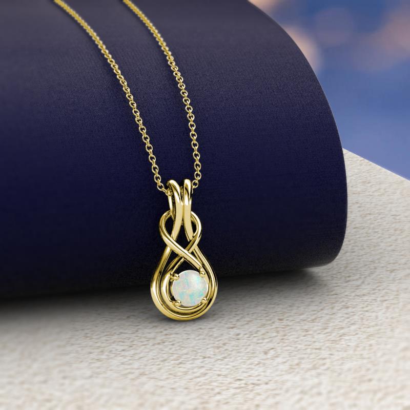 Round Opal 0.06 ct Womens Solitaire Infinity Love Knot Pendant Necklace 18K Yellow Gold.Included 16 Inches 18K Yellow Gold Chain More Details ...