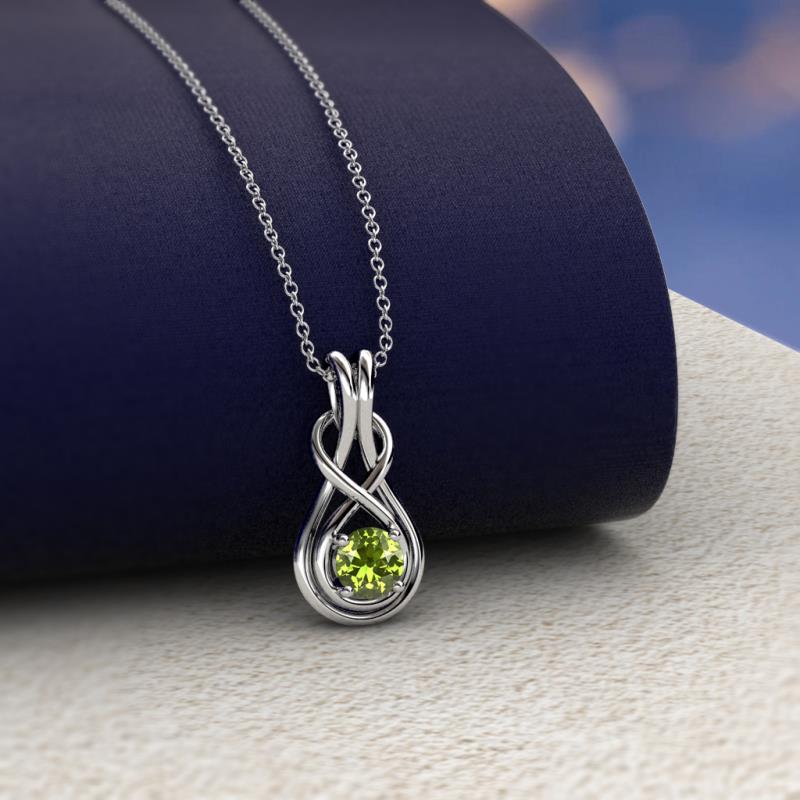 Round Peridot 0.12 ct Womens Solitaire Infinity Love Knot Pendant Necklace 18K White Gold.Included 16 Inches 18K White Gold Chain More Details ...
