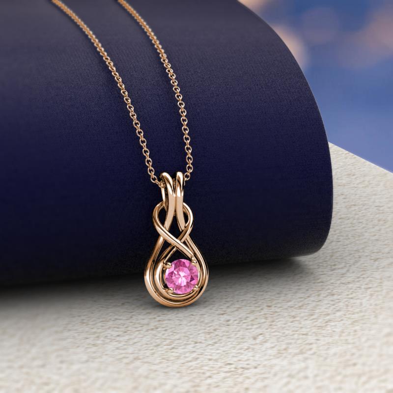 Round Pink Sapphire 0.11 ct Womens Solitaire Infinity Love Knot Pendant Necklace 14K Rose Gold.Included 16 Inches 14K Rose Gold Chain More Details ...