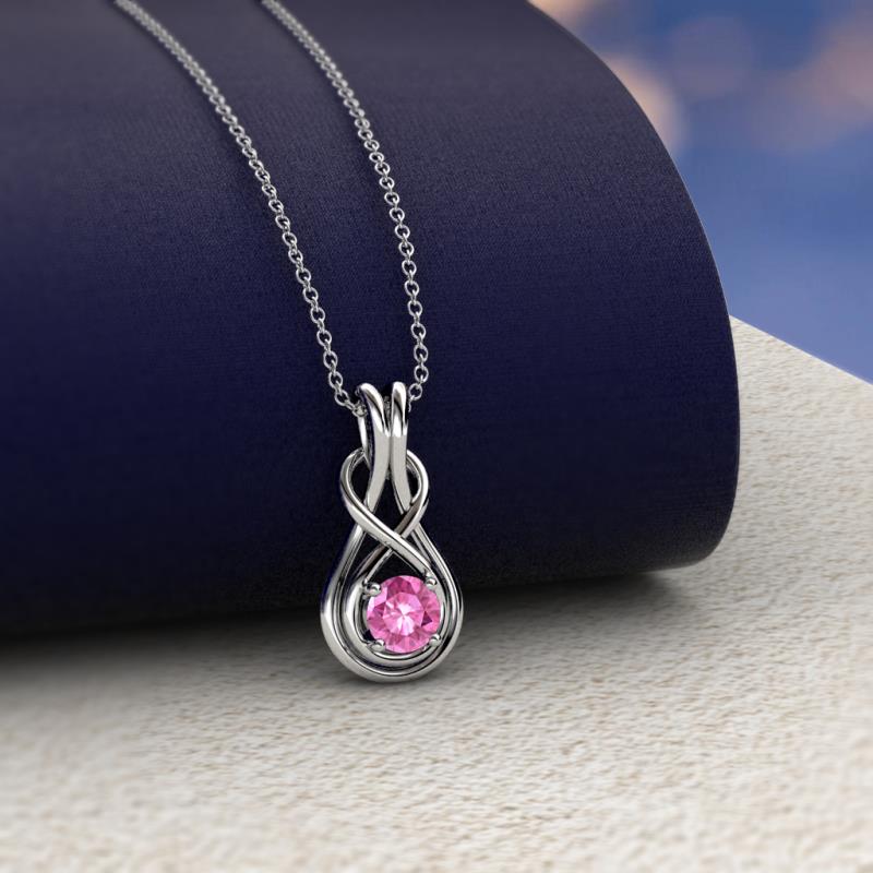 Round Pink Sapphire 0.11 ct Womens Solitaire Infinity Love Knot Pendant Necklace Platinum.Included 16 Inches Platinum Chain More Details ...