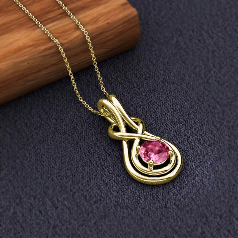 Round Pink Tourmaline 3/8 ct Womens Solitaire Infinity Love Knot Pendant Necklace 14K Yellow Gold.Included 16 Inches 14K Yellow Gold Chain More Details ...