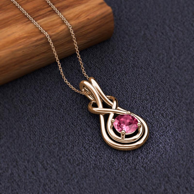 This striking pendant stands true to its name Amanda - Loved by everyone. It signify eternal love with a Pink Tourmaline nestled in the gorgeous fusion of infinity and love knot.