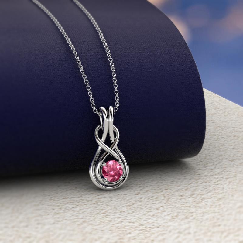 Round Pink Tourmaline 0.08 ct Womens Solitaire Infinity Love Knot Pendant Necklace 925 Sterling Silver.Included 16 Inches 925 Sterling Silver Chain More Details ...