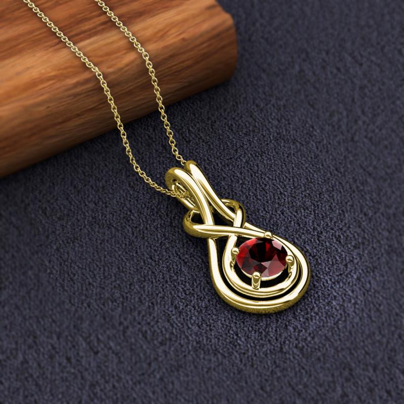 Round Red Garnet 5/8 ct Womens Solitaire Infinity Love Knot Pendant Necklace 10K Yellow Gold.Included 16 Inches 10K Yellow Gold Chain More Details ...