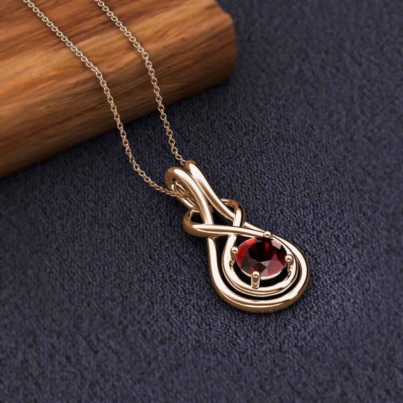 This striking pendant stands true to its name Amanda - Loved by everyone. It signify eternal love with a Red Garnet nestled in the gorgeous fusion of infinity and love knot.