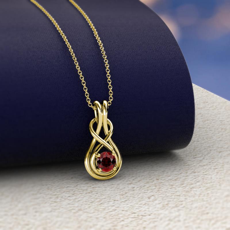 Round Red Garnet 0.12 ct Womens Solitaire Infinity Love Knot Pendant Necklace 10K Yellow Gold.Included 16 Inches 10K Yellow Gold Chain More Details ...