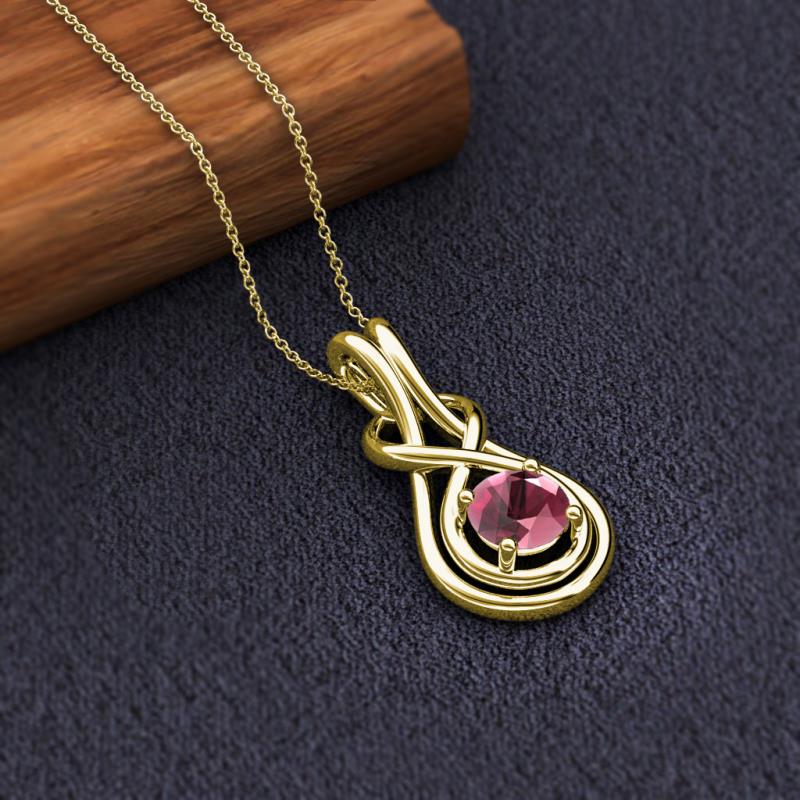 Round Rhodolite Garnet 1/2 ct Womens Solitaire Infinity Love Knot Pendant Necklace 14K Yellow Gold.Included 16 Inches 14K Yellow Gold Chain More Details ...