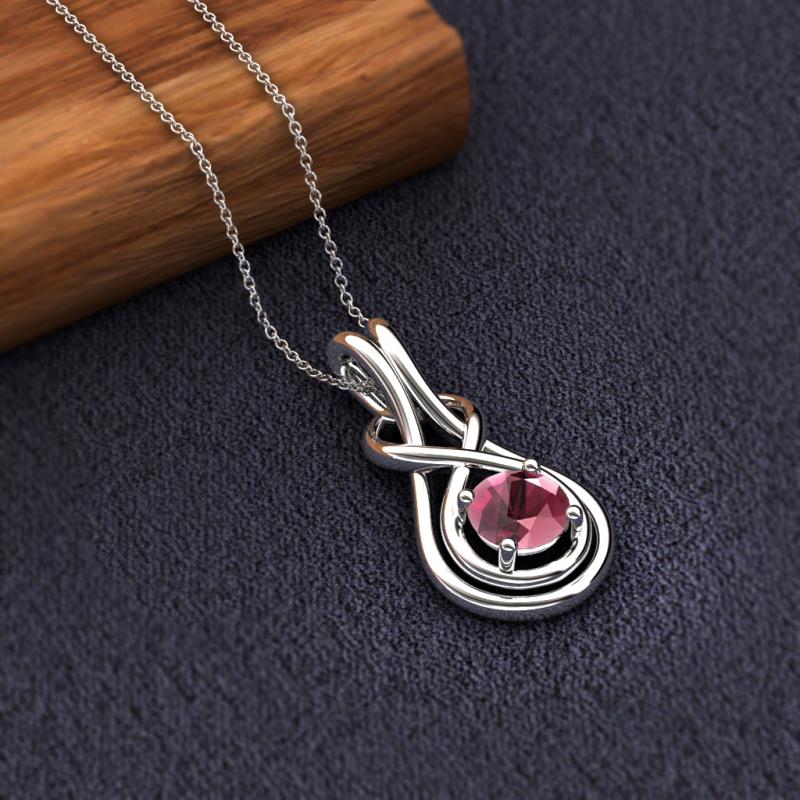 This striking pendant stands true to its name Amanda - Loved by everyone. It signify eternal love with a Rhodolite Garnet nestled in the gorgeous fusion of infinity and love knot.