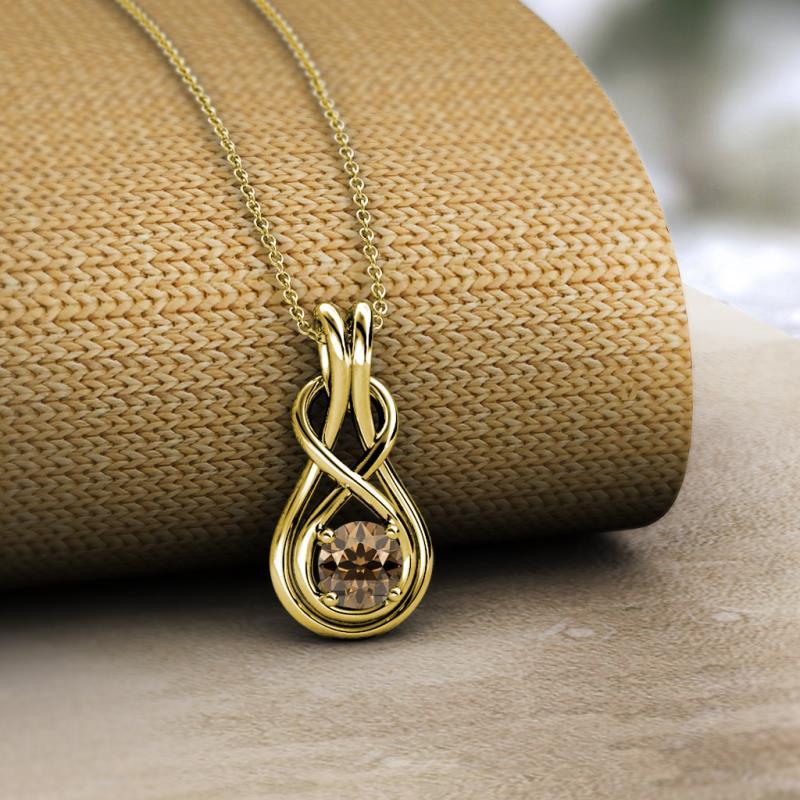 Round Smoky Quartz 1/4 ct Womens Solitaire Infinity Love Knot Pendant Necklace 14K Yellow Gold.Included 16 Inches 14K Yellow Gold Chain More Details ...