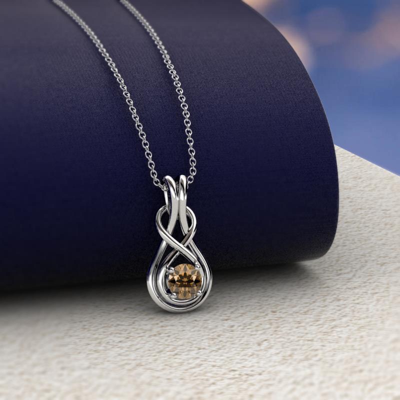 Round Smoky Quartz 0.10 ct Womens Solitaire Infinity Love Knot Pendant Necklace 18K White Gold.Included 16 Inches 18K White Gold Chain More Details ...