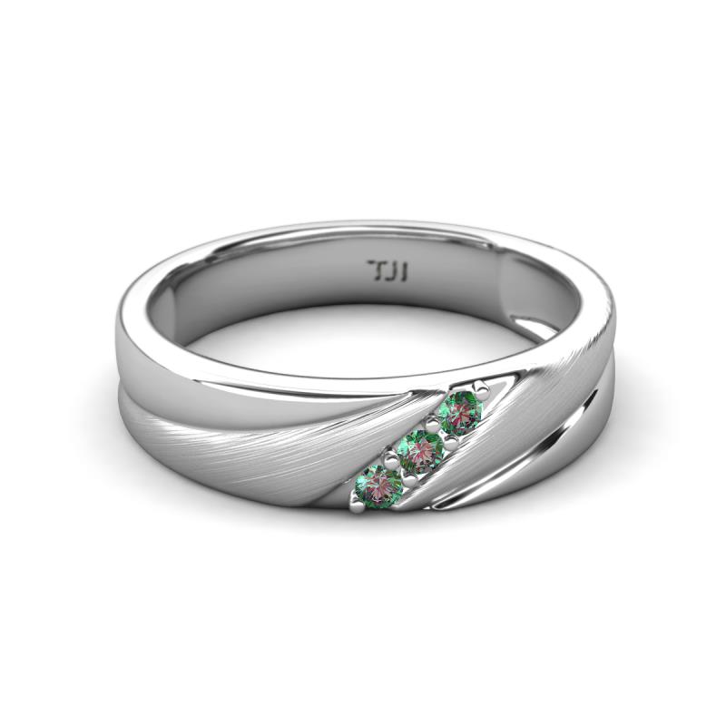 Created Alexandrite (2.00 mm) Angled Brushed and Polished Finish Men Three Stone Wedding Band in Sterling Silver More Details ...