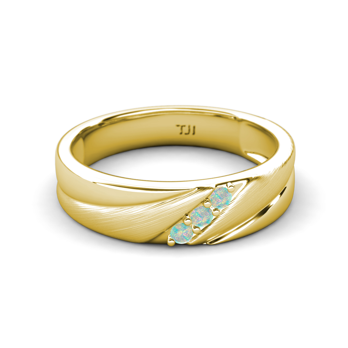 Opal (2.00 mm) Angled Brushed and Polished Finish Men Three Stone Wedding Band in 14K Yellow Gold More Details ...