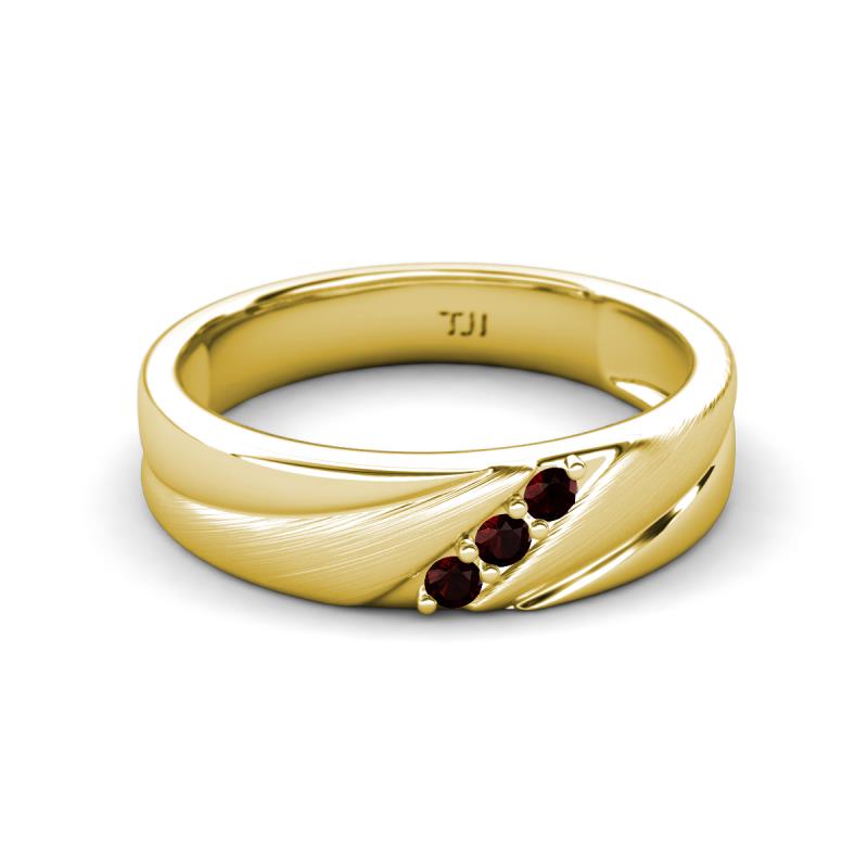 Red Garnet (2.00 mm) Angled Brushed and Polished Finish Men Three Stone Wedding Band in 14K Yellow Gold More Details ...