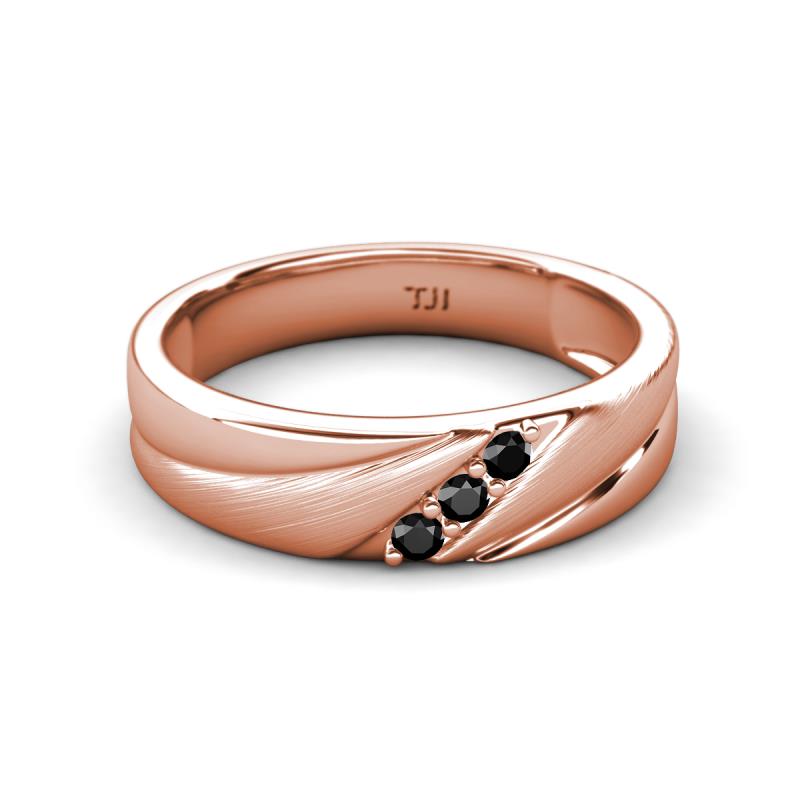 Round Black Diamond (2.00 mm) Angled Brushed and Polished Finish Men Three Stone Wedding Band 18K Rose Gold More Details ...