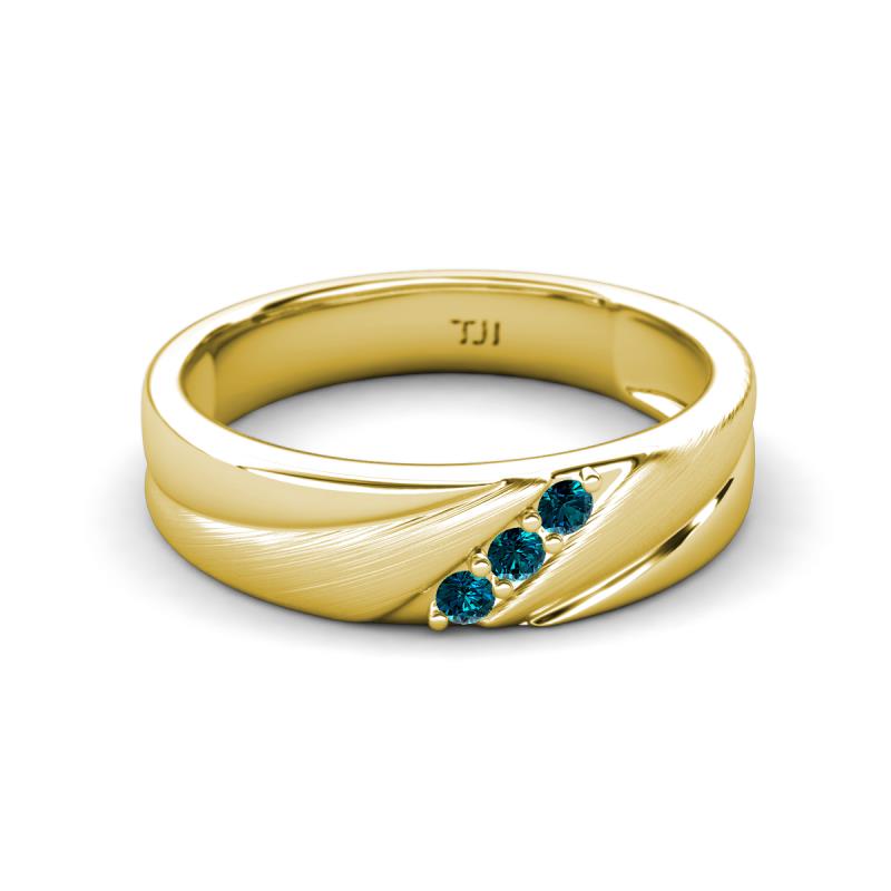 Round Blue Diamond (2.00 mm) Angled Brushed and Polished Finish Men Three Stone Wedding Band 18K Yellow Gold More Details ...