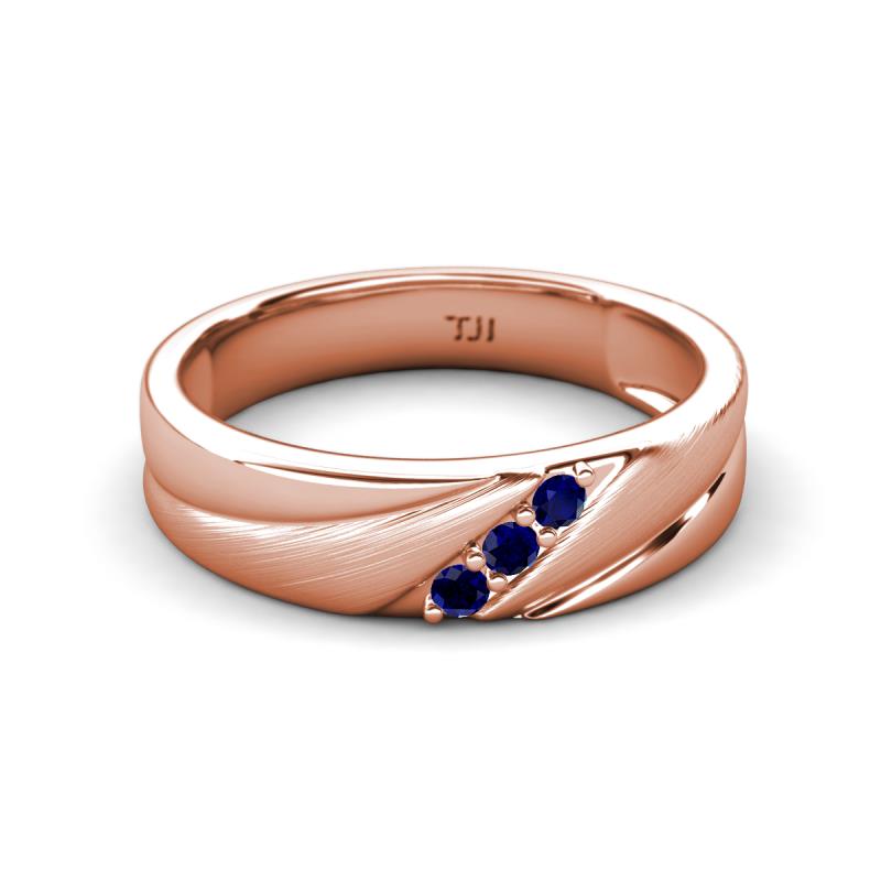 Round Blue Sapphire (2.00 mm) Angled Brushed and Polished Finish Men Three Stone Wedding Band 10K Rose Gold More Details ...