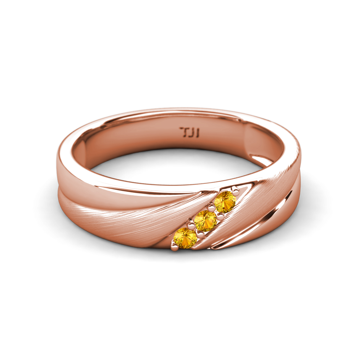 Citrine (2.00 mm) Angled Brushed and Polished Finish Men Three Stone Wedding Band in 18K Rose Gold More Details ...