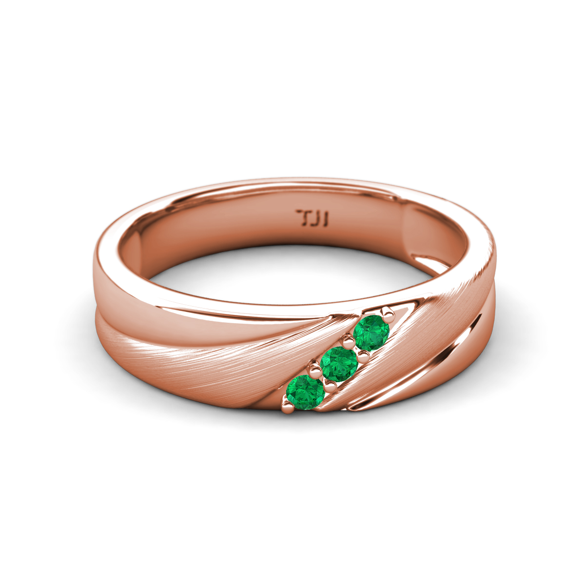 Emerald (2.00 mm) Angled Brushed and Polished Finish Men Three Stone Wedding Band in 14K Rose Gold More Details ...