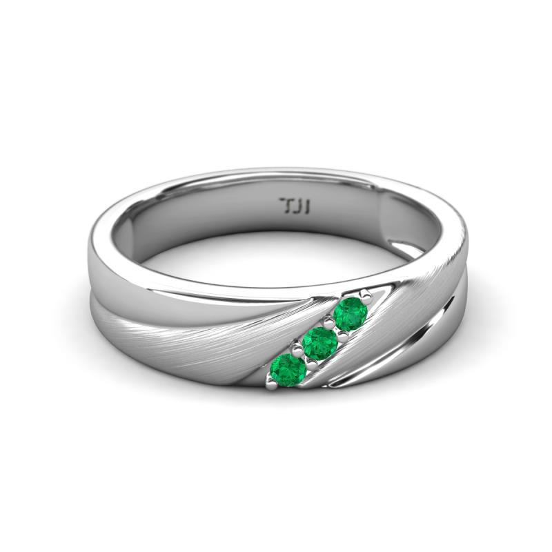 Round Emerald (2.00 mm) Angled Brushed and Polished Finish Men Three Stone Wedding Band Sterling Silver More Details ...