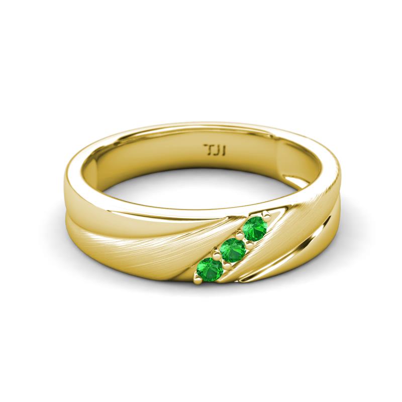 Round Green Garnet (2.00 mm) Angled Brushed and Polished Finish Men Three Stone Wedding Band 10K Yellow Gold More Details ...