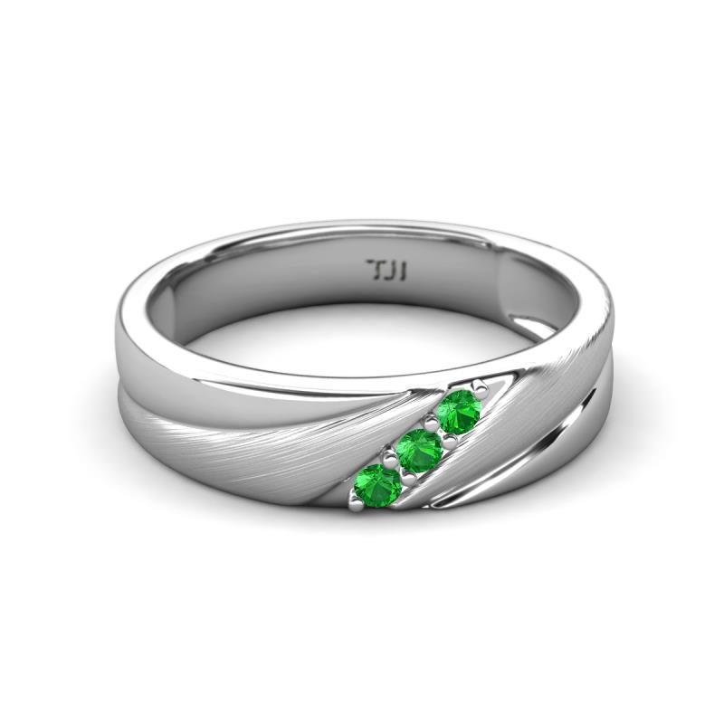 Round Green Garnet (2.00 mm) Angled Brushed and Polished Finish Men Three Stone Wedding Band 14K White Gold More Details ...
