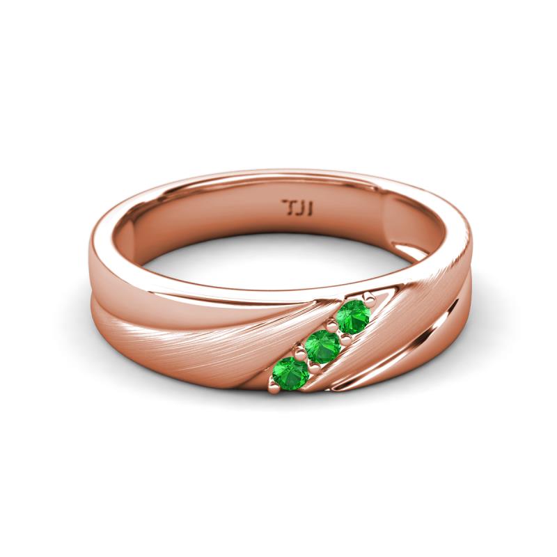 Round Green Garnet (2.00 mm) Angled Brushed and Polished Finish Men Three Stone Wedding Band 18K Rose Gold More Details ...