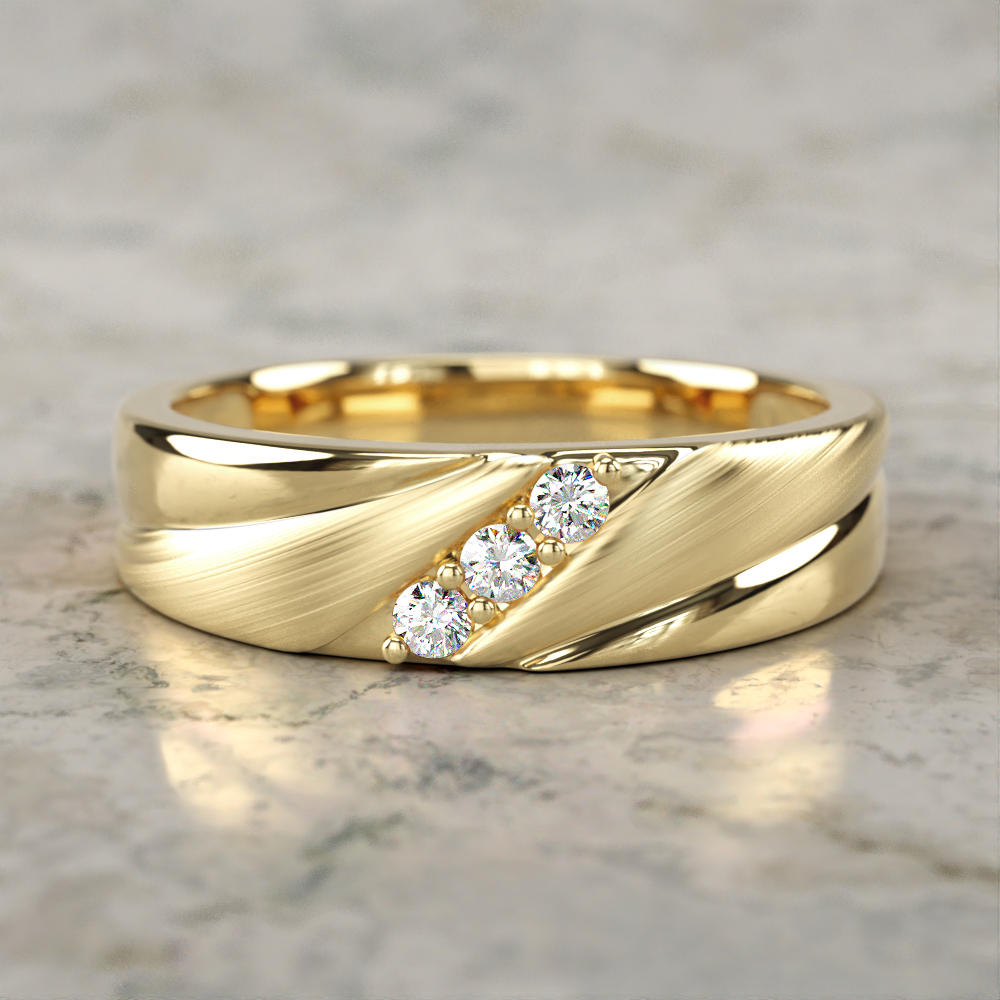 Lab Grown Diamond (2.00 mm) Angled Brushed and Polished Finish Men Three Stone Wedding Band in 14K Yellow Gold More Details ...