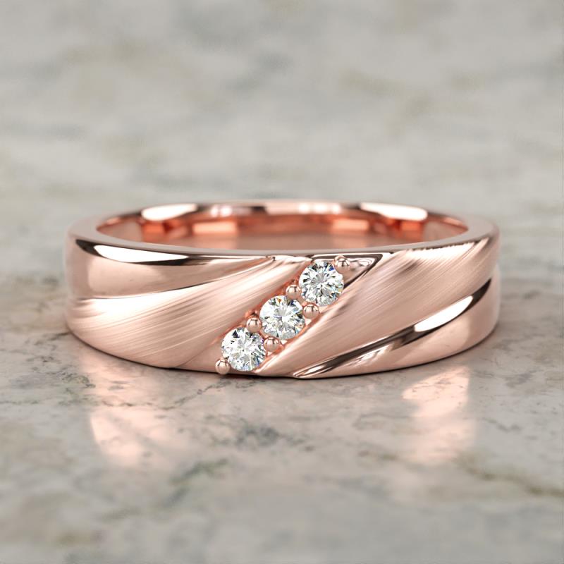 Round Lab Grown Diamond (2.00 mm) Angled Brushed and Polished Finish Men Three Stone Wedding Band 14K Rose Gold More Details ...