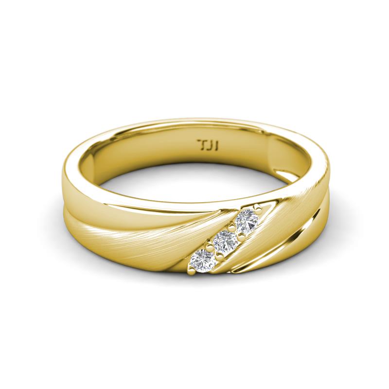 Round Moissanite (2.00 mm) Angled Brushed and Polished Finish Men Three Stone Wedding Band 18K Yellow Gold More Details ...