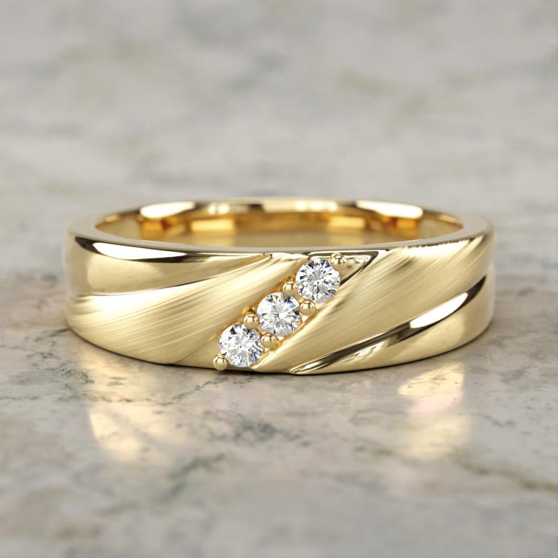 Round Natural Diamond (2.00 mm) Angled Brushed and Polished Finish Men Three Stone Wedding Band 18K Yellow Gold More Details ...