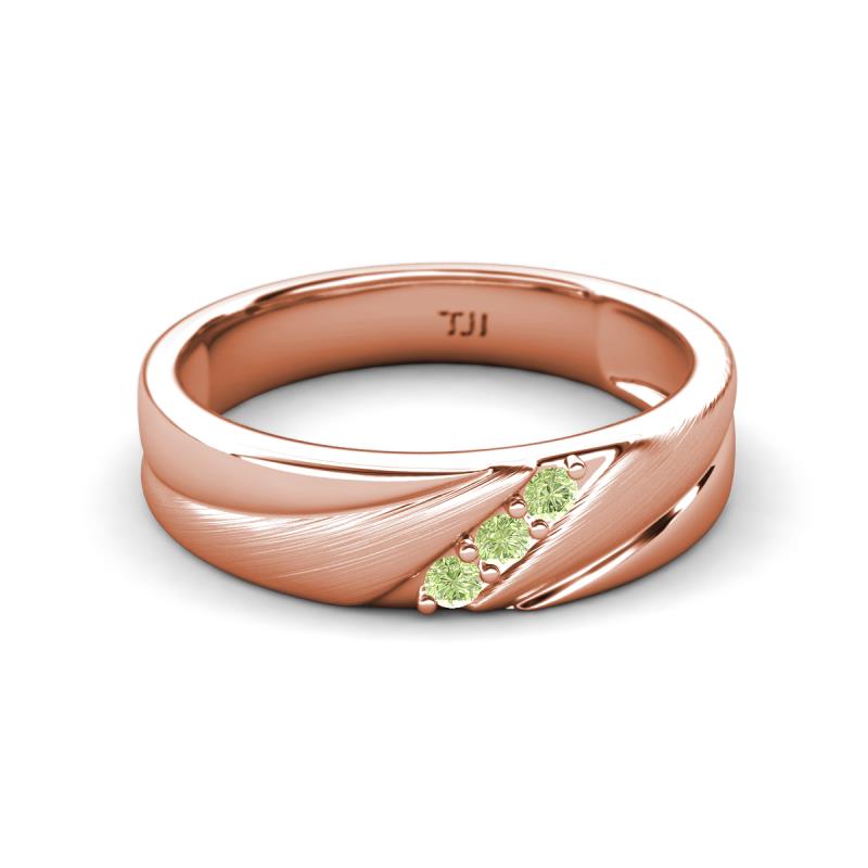 Round Peridot (2.00 mm) Angled Brushed and Polished Finish Men Three Stone Wedding Band 10K Rose Gold More Details ...