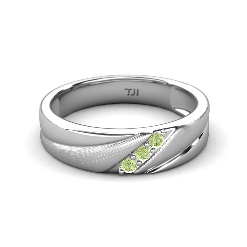Round Peridot (2.00 mm) Angled Brushed and Polished Finish Men Three Stone Wedding Band Platinum More Details ...