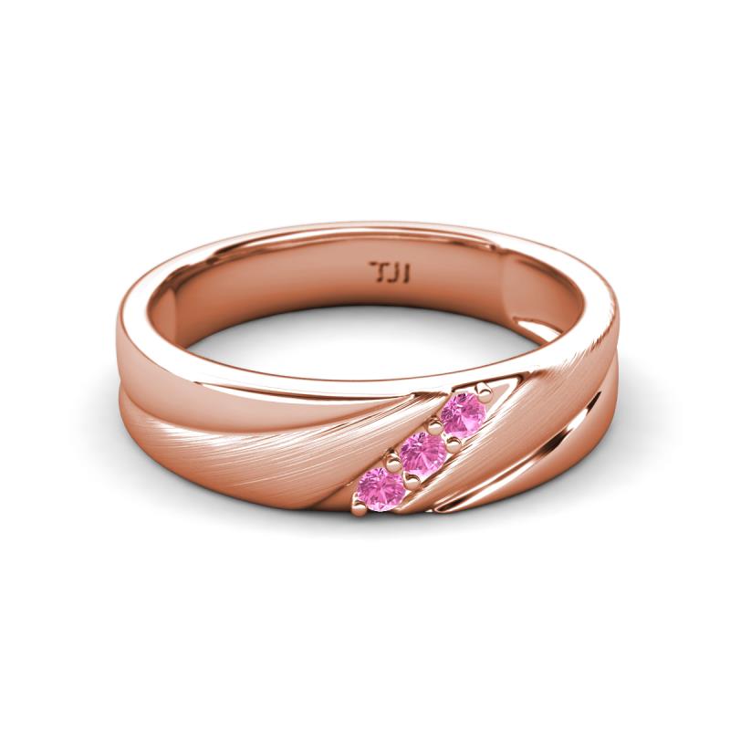 Round Pink Sapphire (2.00 mm) Angled Brushed and Polished Finish Men Three Stone Wedding Band 18K Rose Gold More Details ...