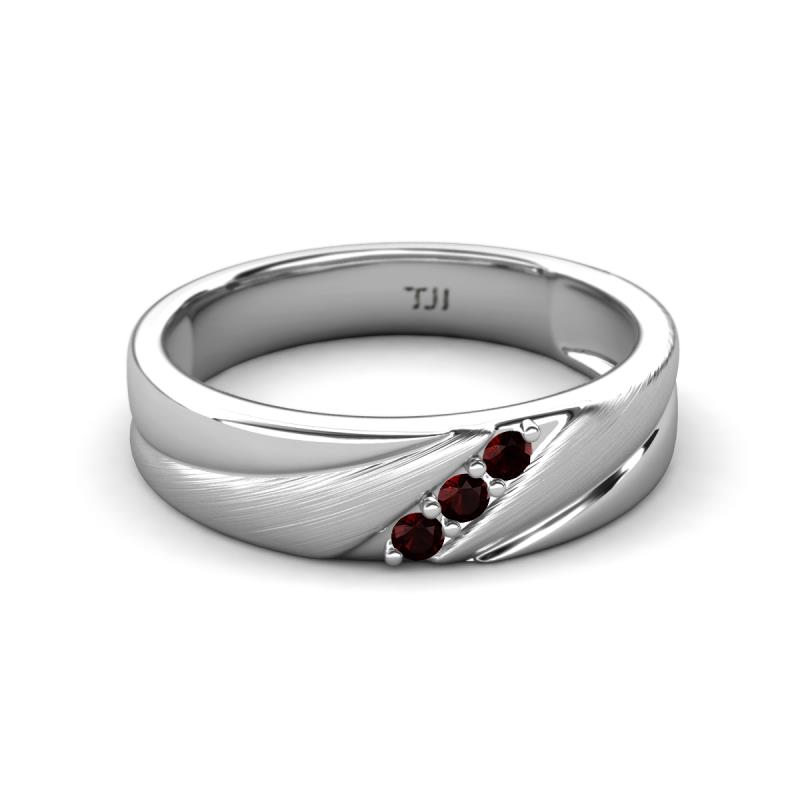 Round Red Garnet (2.00 mm) Angled Brushed and Polished Finish Men Three Stone Wedding Band Sterling Silver More Details ...