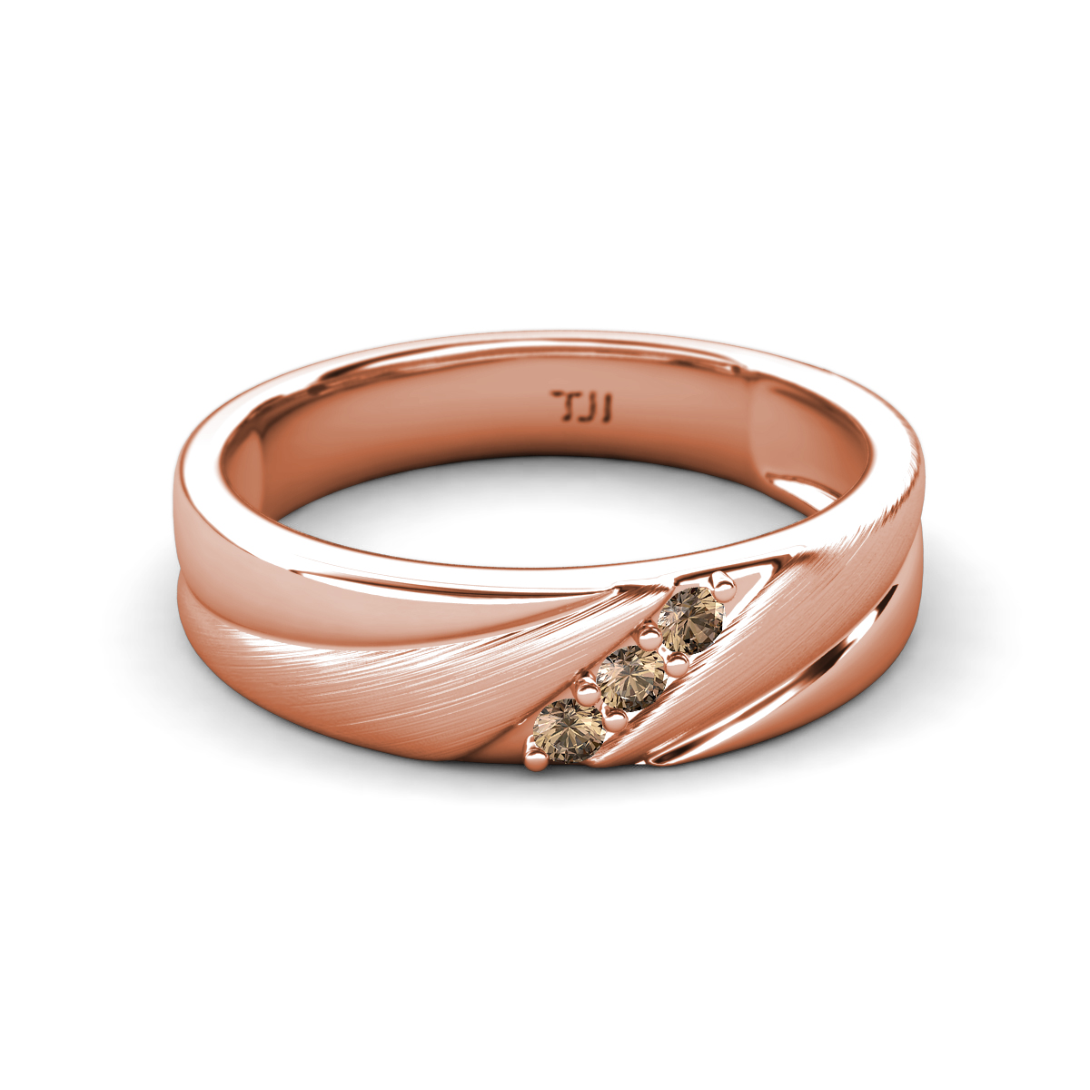 Smoky Quartz (2.00 mm) Angled Brushed and Polished Finish Men Three Stone Wedding Band in 18K Rose Gold More Details ...