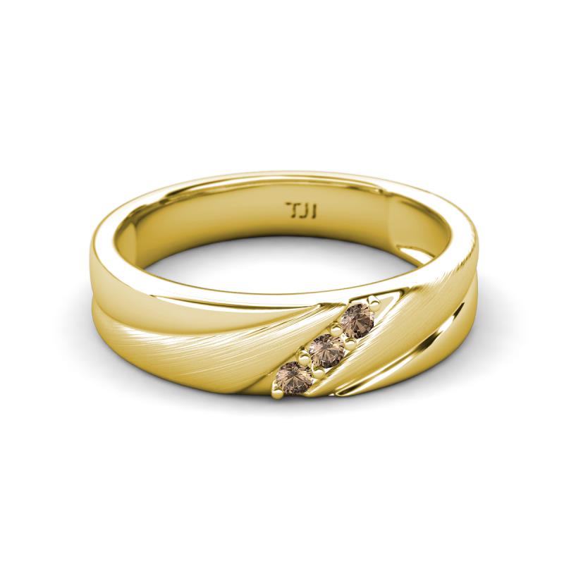 Round Smoky Quartz (2.00 mm) Angled Brushed and Polished Finish Men Three Stone Wedding Band 14K Yellow Gold More Details ...